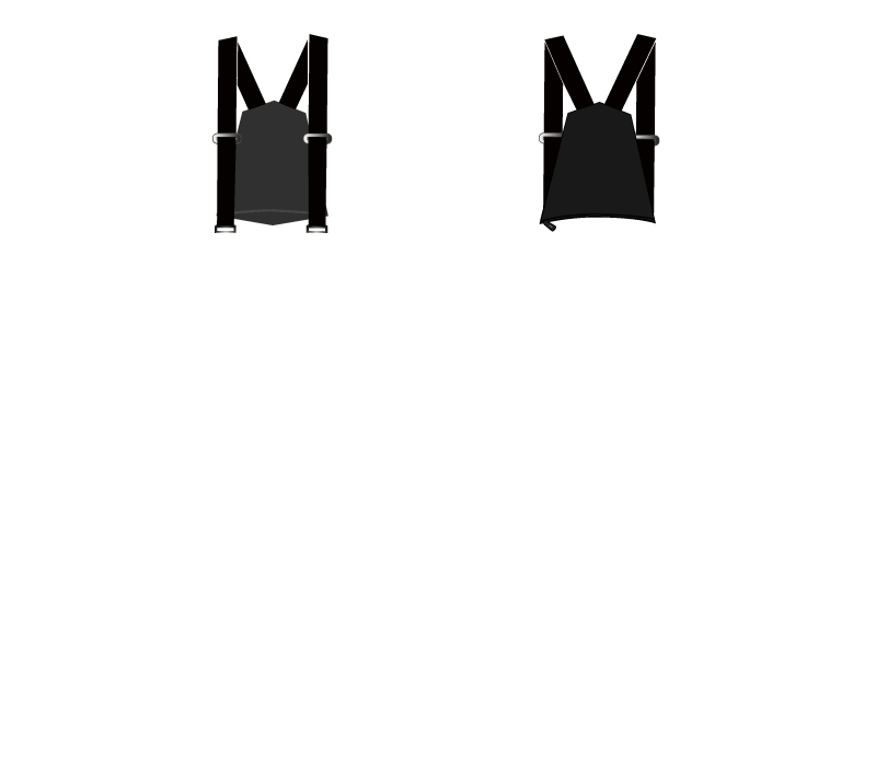 • Removable back plate with attached elastic suspenders